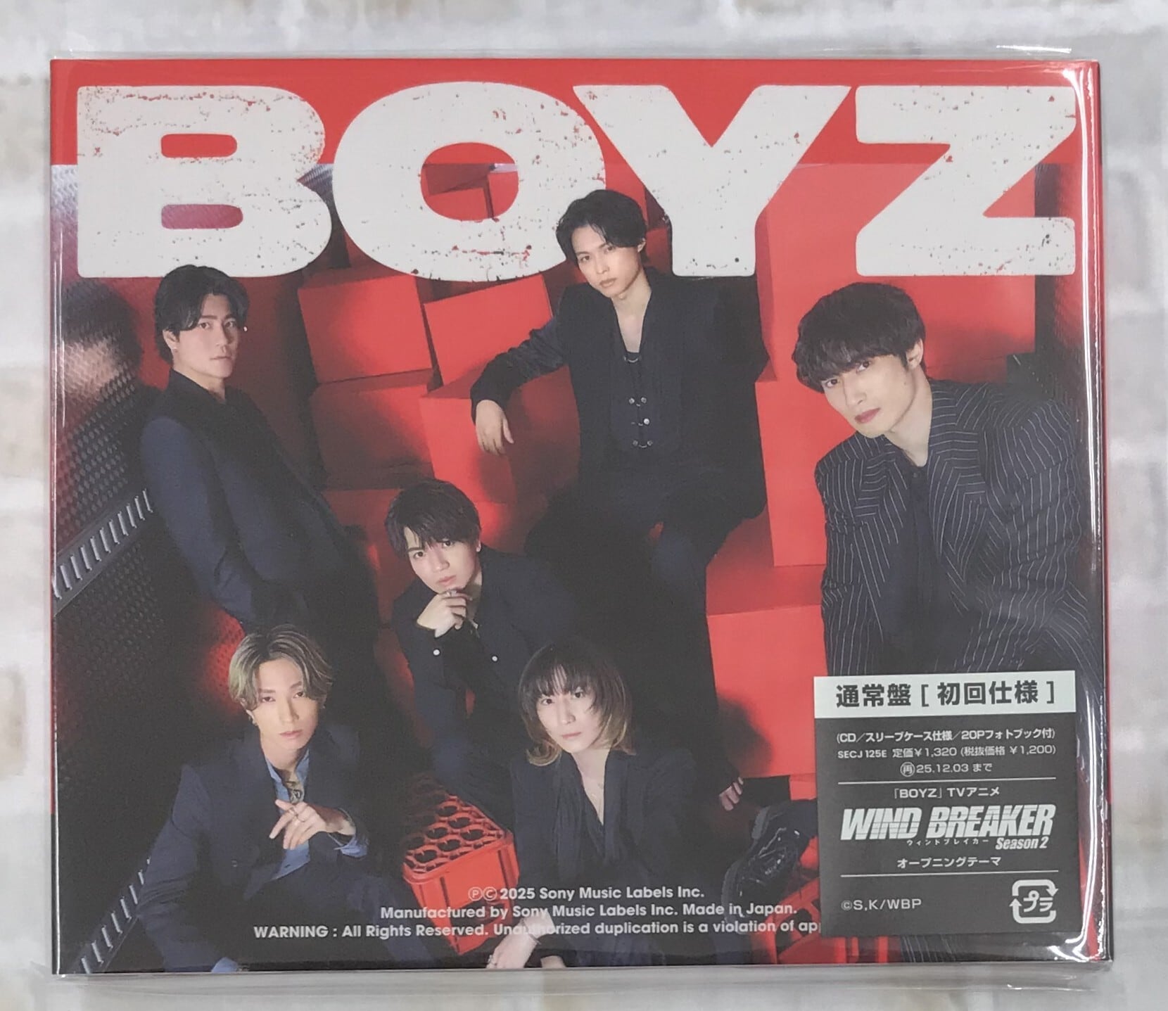 2025年3月にリリースされた「バリア」に続き、2025年2作目となるSixTONESのニューシングル「BOYZ」が発売決定!表題曲「BOYZ」は、TVアニメ『WIND BREAKER Season 2』オープニングテーマ。自分の居場所を見つけ、守りたいもののために戦う強さを、疾走感溢れるバンドサウンドに乗せたエモーショナルラウドロック。