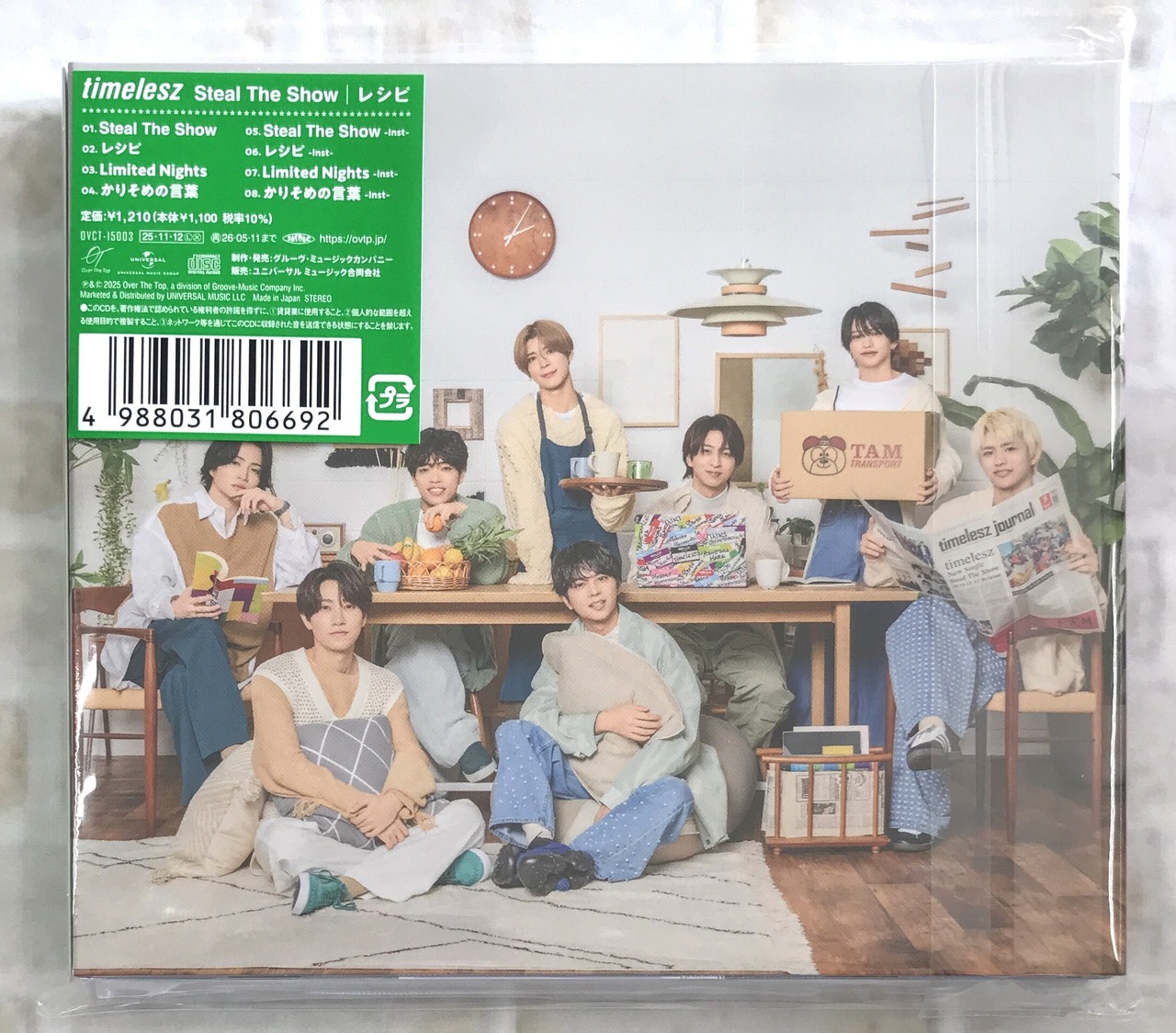 新体制timeleszの記念すべき初CDシングルはDouble A-Sideで発売!日本テレビ系バスケットボール応援ソングの「Steal The Show」は、世界を驚かすというバスケ日本代表の覚悟を表現していると共に、時代の主役を目指すtimeleszの決意もリンクした攻めのダンスナンバー。これまで積み上げてきた時間、小さかった期待と自信を自らの努力で大きくしていく様、仲間や大切な人との絆など、誰しもが持つ逆境や目標に向かう上で磨いていく大切な事柄を歌に乗せた聴く人全てに対する応援歌です。ラップパートの作詞は日テレ系バスケットボールSPキャスターを務める菊池風磨が担当。もう一方の表題曲「レシピ」は松島聡が初主演、猪俣周杜が初出演するテレビ朝日系ドラマオシドラサタデー『パパと親父のウチご飯』の主題歌。嬉しい時、楽しい時、大変な時。日々生きている中で大切な誰かと過ごす時間、支え合う気持ちが人生を彩るレシピなんだ、という当たり前に過ごしている日常の幸せを歌った一曲。通常盤には橋本将生主演のテレ東系 ドラマ24『ひと夏の共犯者』の主題歌「Limited Nights」を収録。