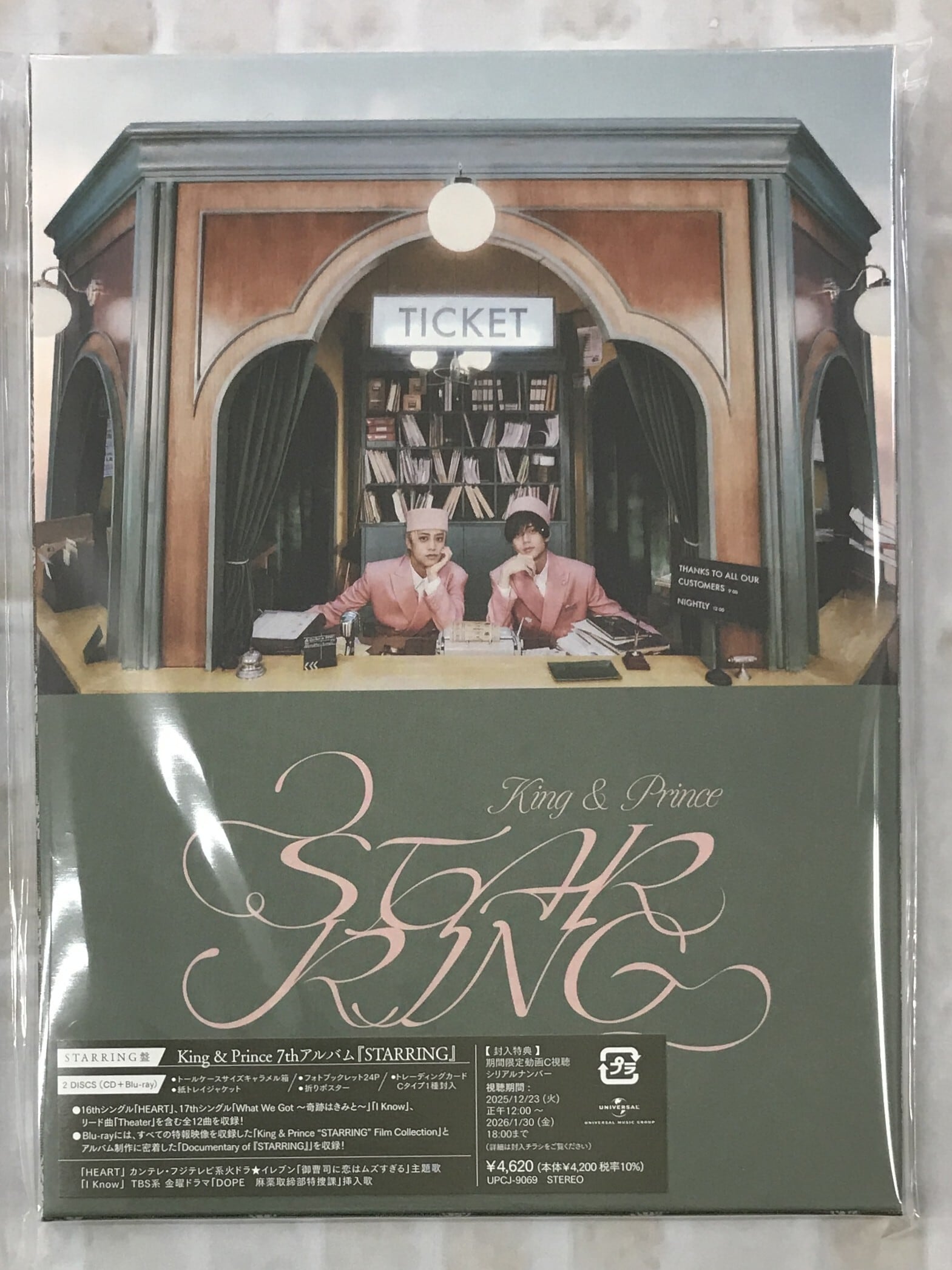King & Princeの7枚目のアルバムが発売決定!今作のテーマは【映画】。収録曲を架空の映画の主題歌に見立て、その映画のポスター・特報全てを制作。King & Princeの二人だから実現できた前代未聞のコンセプトアルバム『STARRING』。新曲「Theater」、16thシングル「HEART」、17thシングル「What We Got ~奇跡はきみと~ / I Know」を含む全12曲収録。