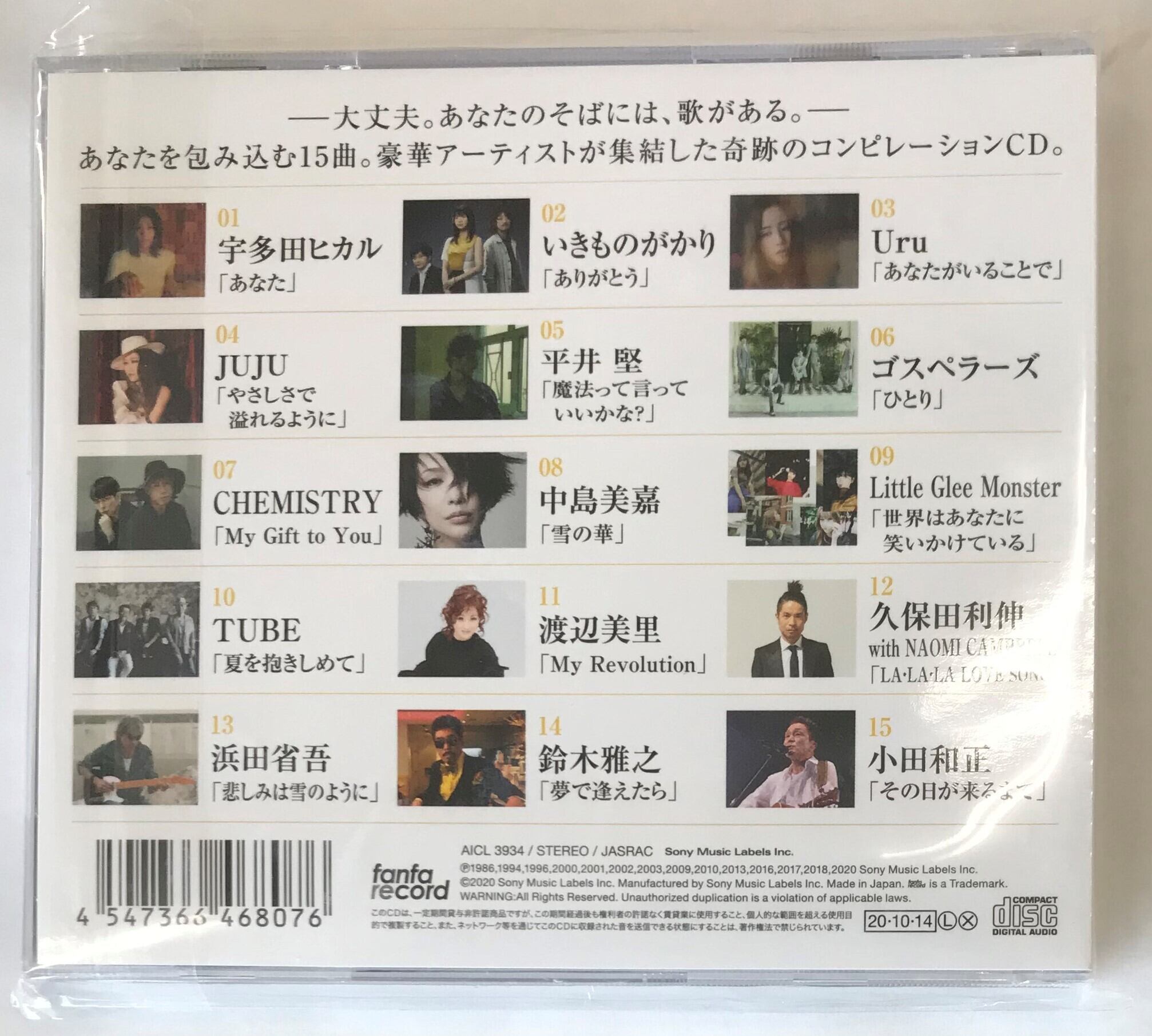 ---大丈夫。あなたのそばには、歌がある。---あなたを包み込む15曲。豪華アーティストが集結した奇跡のコンピレーションCD。緊急事態宣言直後となった5月31日にYouTubeにてオンエアされたスペシャルプログラム『SING for ONE-Special LiveNight-』の大きな反響を受け、いま大人の背中を押してくれる総勢15組・豪華アーティストの名曲が集結したコンピレーションCDの発売が決定。いまこそじっくり聴きたい、あなたを包み込む珠玉の15曲を贅沢に収録。