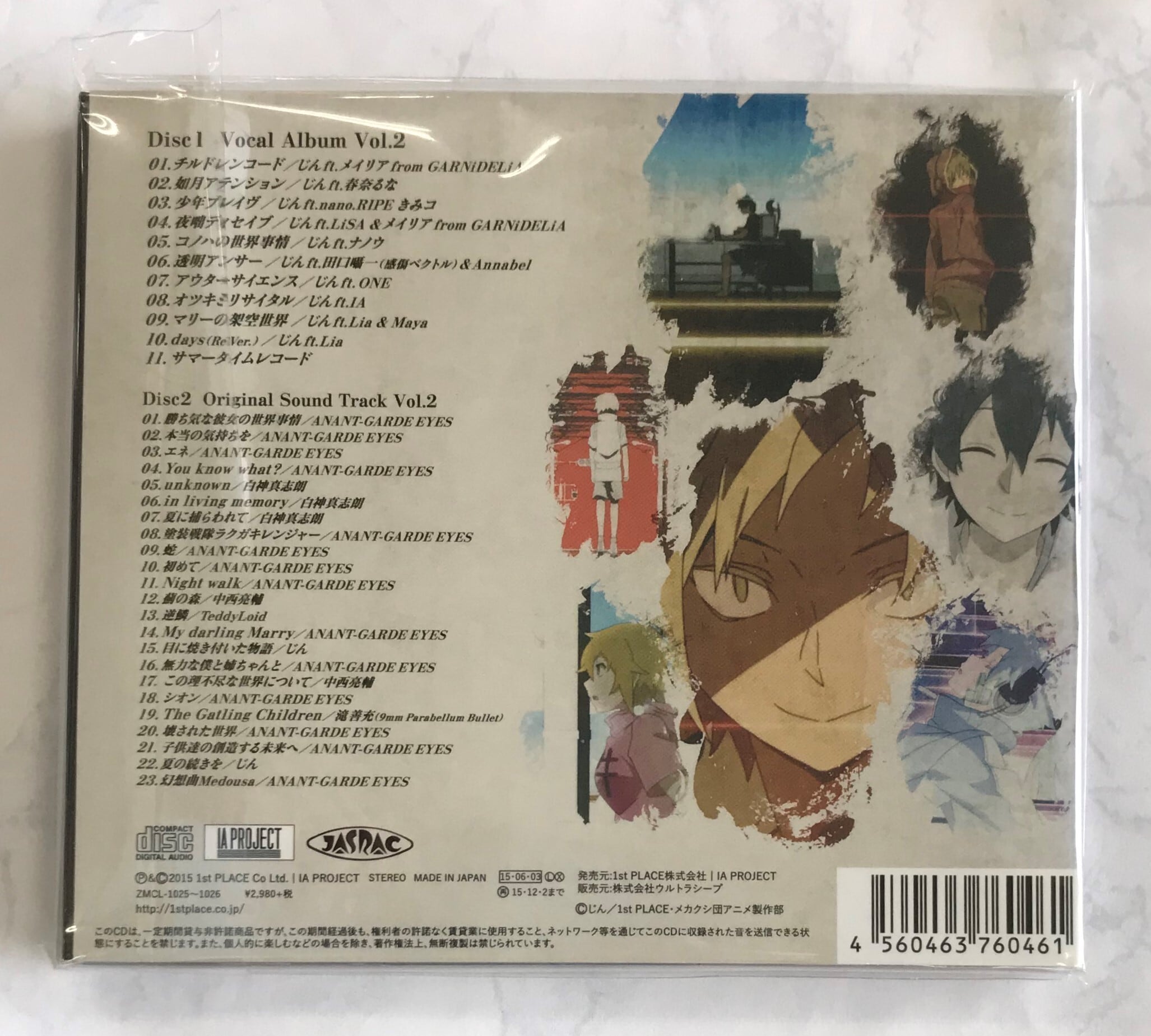 音楽家・小説家の顔を持つマルチクリエイターで、“カゲロウプロジェクト”でも知られる、“じん”原作/脚本によるアニメ『メカクシティアクターズ』の主題歌/挿入歌&サウンドトラック集の第二弾。