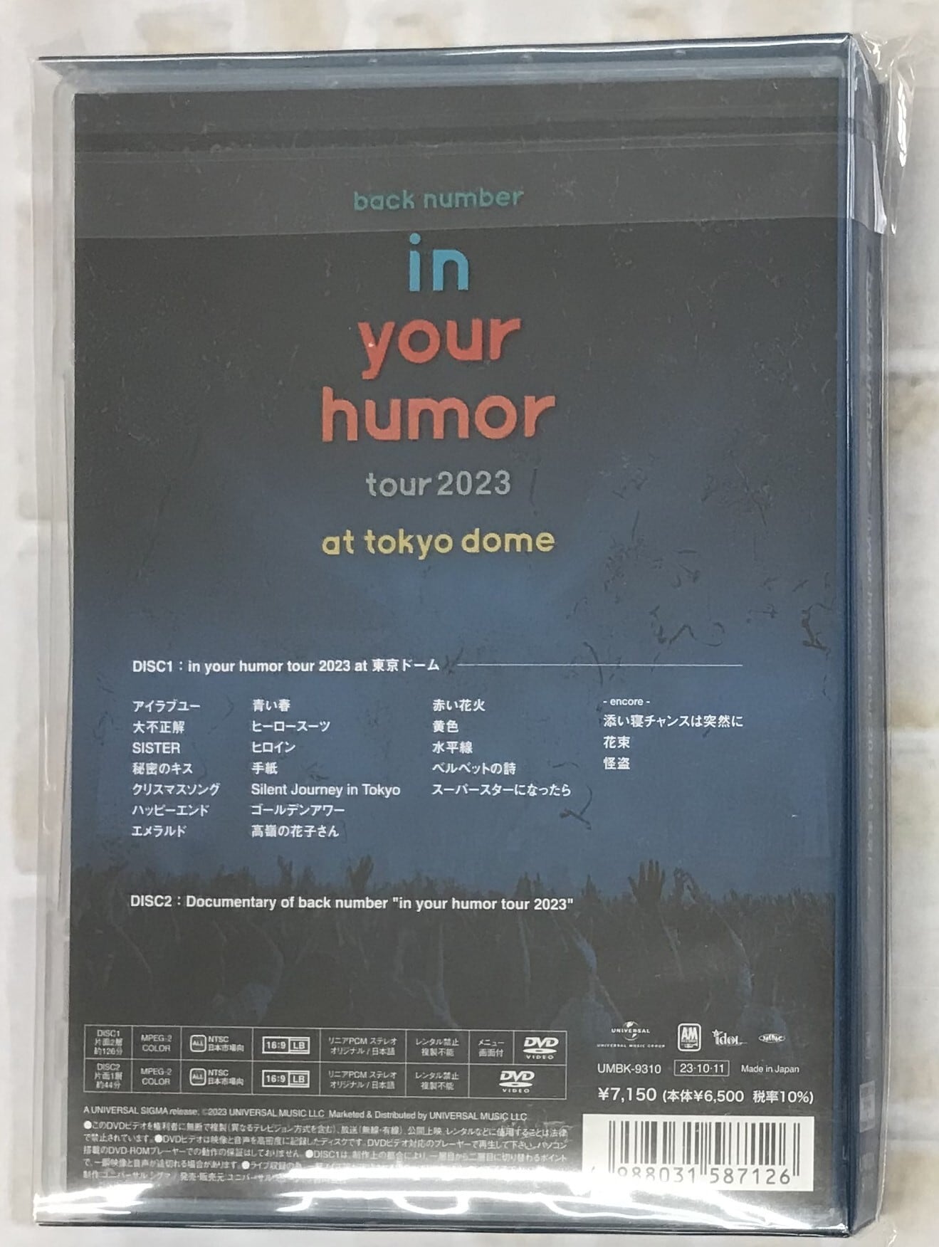 back number / in your humor tour 2023 at 東京ドーム / 初回限定盤 (DVD)